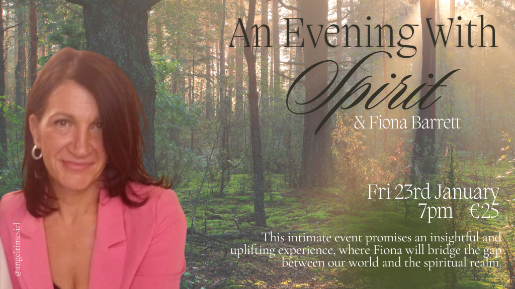 Join us for the beautiful “An Evening with Spirit” at Angel Times, hosted by the renowned spiritual medium, Fiona Barrett. This intimate event, promises an insightful and uplifting experience, where Fiona will bridge the gap between our world and the spiritual realm.