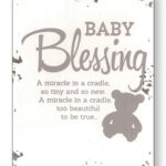 Baby Blessing Distressed Wood Plaque is a 5.75 x 7.75 inch wooden plaque that can be freestanding or hung on a wall. It features the wording ‘Baby Blessing…A miracle in a cradle, so tiny and so new. A miracle in a cradle too beautiful to be true.’