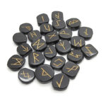 - Hand-carved Black Obsidian runestones, each engraved with a traditional rune symbol