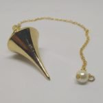 The Brass Gold Plated Pendulum comes with a 15cm chain. The pendulum has a long tapered point very suitable for dowsing and weighs 30g.