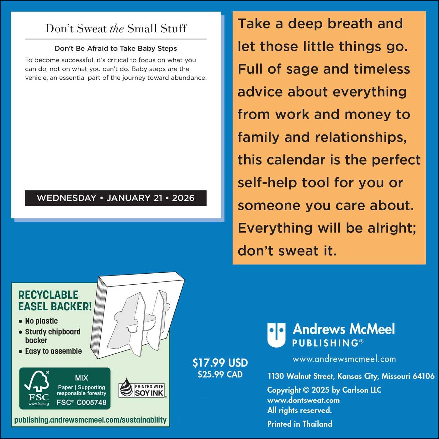 Featuring digestible wisdom and helpful suggestions from the full collection of bestselling Don’t Sweat books, the Don’t Sweat The Small Stuff Desk Calendar 2026 will give you the tools to enhance all the most important parts of your life, including parenting, work, romance, finances, and more.