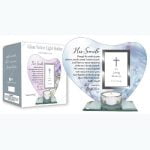 The Glass Plaque/Votive Holder His Smile is a silver Effect Tea Light Holder.