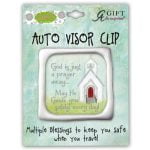 The Just a prayer away Visor Clip depicts the image of a church. It is a 2 inch squared metal plaque. Also, It has a clip on the back so that one can clip it to the sun visor in a car. It features the inscription God is just a prayer away… May he guide you safely every day.