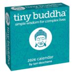 Each decorative page of Tiny Buddha Desk Calendar 2026 features a quotation to uplift, inspire, and motivate. Topics include letting go of anxiety, mindfulness, happiness, love, change, self-care, and more.
