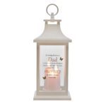 Honor the memory of a beloved Dad with the Thoughts of You Memorial Lantern by CELEBRATIONS®. This elegant lantern serves as a heartfelt tribute, providing a warm and comforting glow in remembrance of someone so special.