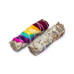 The sage is dried and wrapped into bundles of various sizes, usually 4 inches or bigger and come in two main styles. Either a “torch” where only one end is burnt or a “cylinder” where either end can be used.