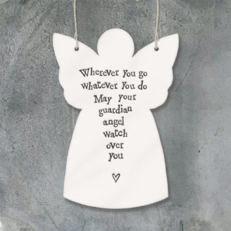 Crafted from creamy white porcelain, the angel features a soft ribbed texture through the glaze, giving it a subtle elegance. The meaningful message on the front is beautifully indented into the porcelain, reading: